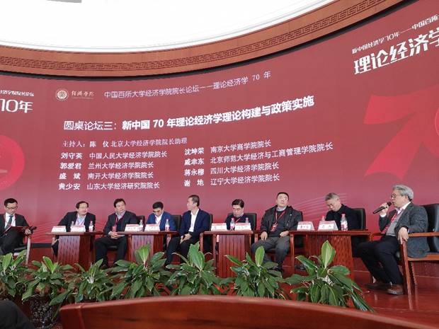 2019年12月7日上午,在北京大学举办“新中国经济学70年—中国百所大学beat365唯一官网院长论坛”。beat365唯一官网院长谢地参加论坛开幕式及“新中国70年理论经济学理论构建与政策实施”圆桌论坛并发言。