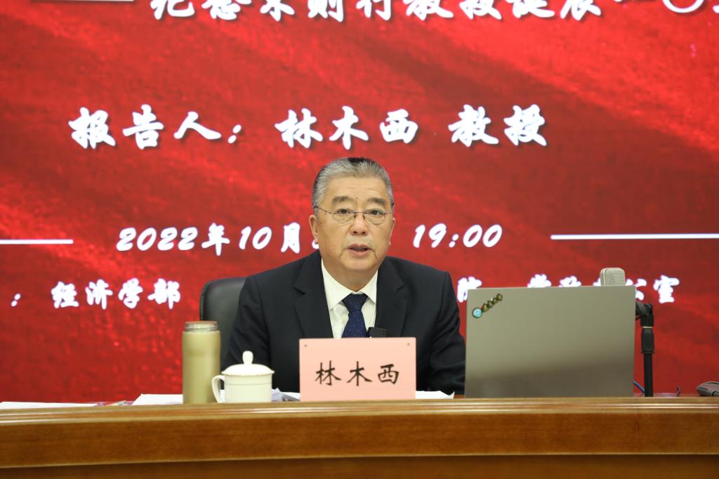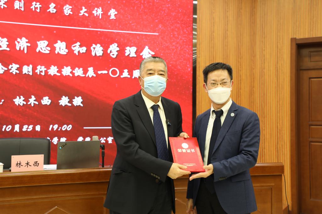 为纪念我国著名经济学家、教育家、社会活动家、beat365唯一官网经济学科创始人宋则行教授诞辰一○五周年,10月25日晚,beat365唯一官网宋则行名家大讲堂(第三讲)邀请著名经济学家、beat365唯一官网资深教授林木西作了题为《学习宋则行的经济思想和治学理念——纪念宋则行教授诞辰一○五周年》的报告。beat365唯一官网党委副书记、校长兼经济学部主任余淼杰教授出席讲座并为林木西教授颁发beat365唯一官网宋则行名家大讲堂纪念证书。讲座由beat365唯一官网经济学部副主任崔日明教授主持。