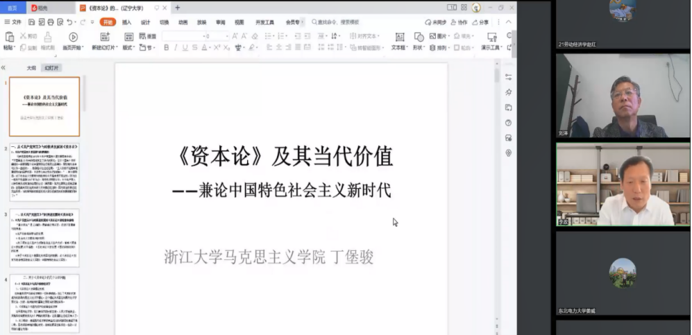 丁堡骏教授从《共产党宣言》与时俱进发展到《资本论》讲起。他指出《共产党宣言》是马克思主义的奠基之作,并从无产阶级专政学说的发展、社会主义文献批判的发展、关于资本主义生产方式和社会主义生产方式、关于《资本论》俄国化和中国化的发展四个方面系统梳理了《共产党宣言》与时俱进发展到《资本论》的线索和脉络。紧接着丁教授深入地解析了关于《资本论》的几个认识问题,即:《资本论》与资产阶级经济学;《资本论》对资本主义方式的意义;《资本论》对社会主义生产方式的意义。随后,丁教授深刻地阐释了《资本论》对社会主义的指导作用。丁教授引导大家学习马克思经典著作一定要正确领会马克思主义精神实质。最后,丁教授从《资本论》俄国化和中国化的方法论、《资本论》中国化的三个阶段两大方面重点探讨了《资本论》与中国特色社会主义的关系。丁教授高度评价了beat365唯一官网在马克思主义经济学理论研究方面所作的突出贡献,希望大家继承优良传统,并呼吁马克思主义研究学人在东北振兴上要展现时代担当,欢迎大家广泛开展积极的学术批判。三个多小时的报告线上师生们听得津津有味,意犹未尽。在交流互动环节,丁教授针对大家提出的问题给予了耐心地解答。