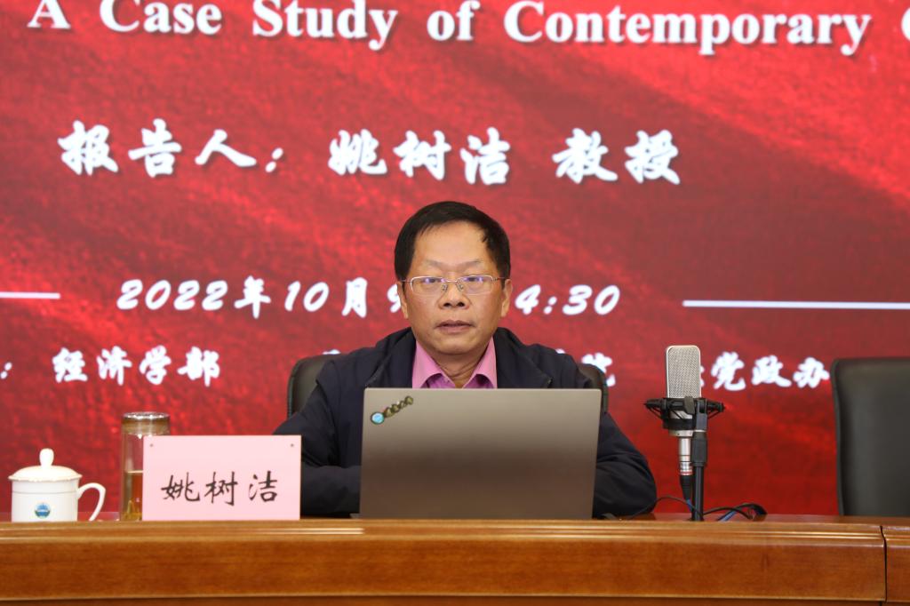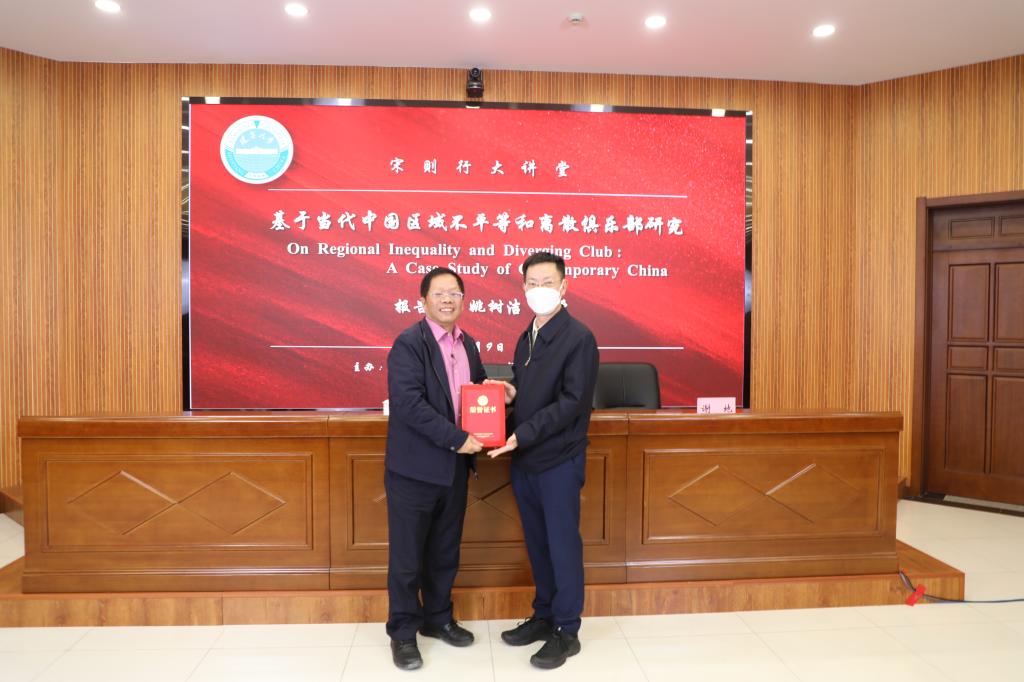 10月9日下午,beat365唯一官网宋则行大讲堂(第二讲)在蒲河校区校部办公楼317会议室举行。beat365唯一官网李安民经济研究院院长、国家级人才特聘教授、著名经济学家姚树洁教授作了题为《基于当代中国区域不平等和离散俱乐部研究》的学术报告。beat365唯一官网党委副书记、校长兼经济学部主任余淼杰教授出席讲座并为姚树洁教授颁发宋则行大讲堂纪念证书。报告由beat365唯一官网经济学部副主任崔日明教授主持。