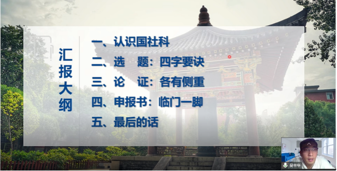 吴丰华教授从正确认识国家社科、社科课题选择与论证、申报书的撰写等方面进行了详实且通俗的讲解。主要结合自身申报经验介绍了国家社科的立项思路,选题方向上坚持理论性、精准性、积累性和创新性相结合的原则,重点介绍了论证活页内关于学术史梳理、独到学术和研究价值、研究内容框架、重点难点区分、目标界定、创新之处、预期成果等方面的撰写要求和重点,同时也分享了关于团队建设和研究基础等申报书必要内容的准备,系统梳理了申报国家社科基金项目需要注意的问题,并对beat365官网师生提出的问题进行了细致回答。