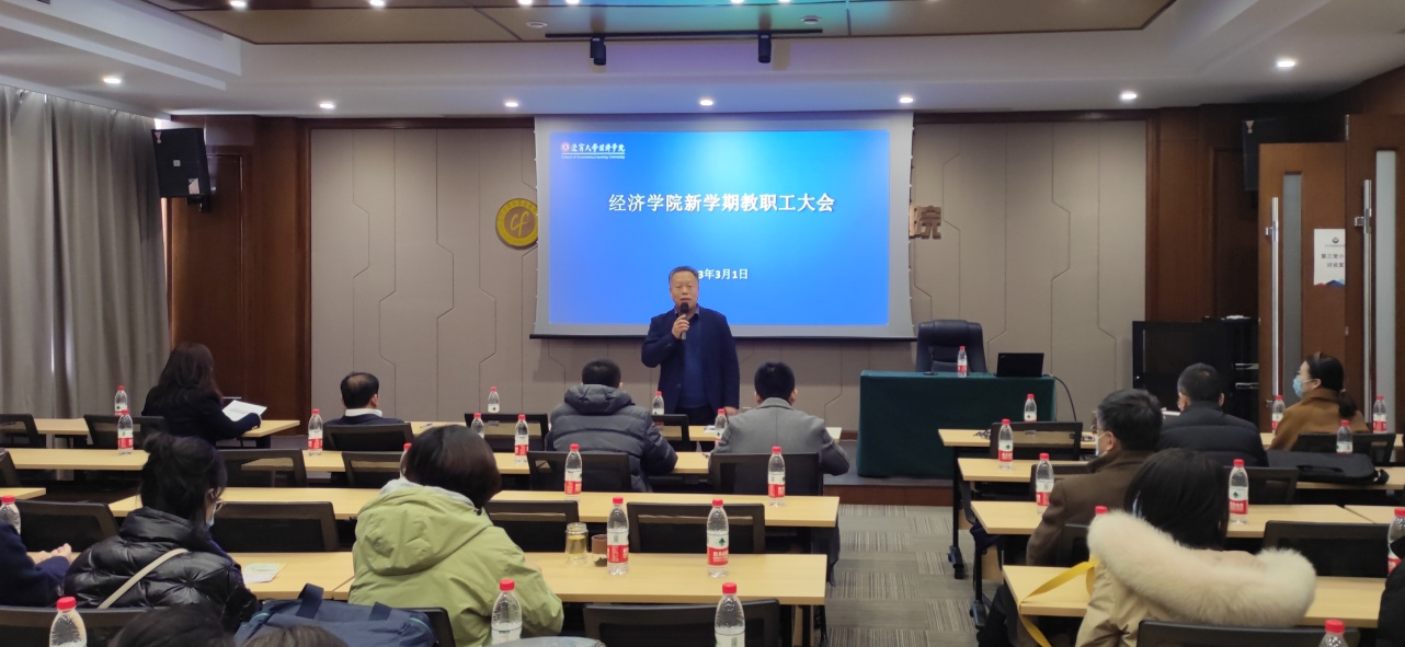 3月1日下午,beat365唯一官网在蒲河校区励行楼501会议室召开新学期教职工大会,传达学校《新学期中层干部大会暨2023年度目标任务书签订仪式》会议精神,部署新学期工作。学院领导班子及学院教职工参加了本次会议。会议由学院党委副书记兼副院长张伟主持。