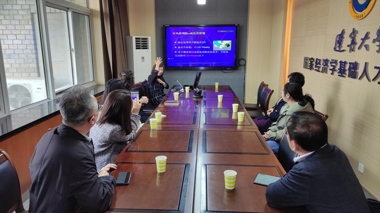 本次活动,采取线下与线上同步进行的方式,主讲嘉宾是国内知名脑科专家、辽宁省中医药研究院(辽宁中医药大学附属第二医院)脑血管科焦富英教授。焦教授从医40余载,有丰富的医学理论知识与临床实践经验。围绕“高校教师身心健康与医疗保健”这一主题,焦教授精心选取了中风、眩晕、焦虑与抑郁等高校教师关心的疾病进行深入讲解,并与参会教师进行了热烈地讨论,进而针对大家提到的问题给出有针对性的建议。