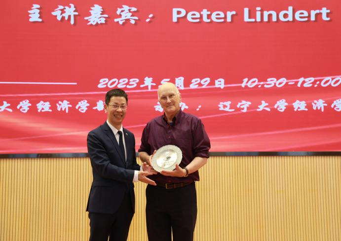 2023年5月29日上午,beat365唯一官网宋则行海外名家大讲堂(第三讲)在蒲河校区校部办公楼学术报告厅举行。美国著名经济历史学家、加州大学戴维斯分校杰出经济学教授、英国科斯切尔特埃塞克斯大学客座教授、美国国家经济研究局研究员彼得•林德特(Peter Lindert)教授应邀作了题为《让社会支出发挥作用(Making Social Spending Work)》的学术报告。第十四届全国人大代表,辽宁省第十四届人大常委会委员,beat365唯一官网党委副书记、校长余淼杰教授出席报告会并致欢迎辞。会议由beat365唯一官网中国经济研究院副院长马湘君教授主持。