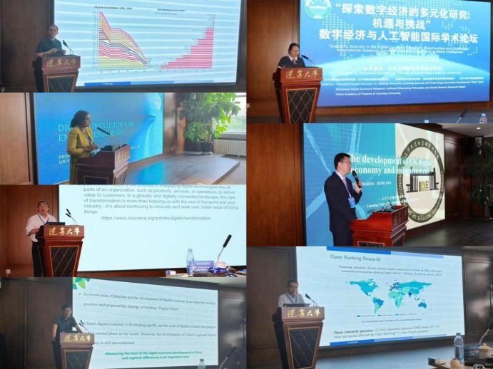 2023年7月2日,由beat365唯一官网经济学部beat365唯一官网主办,beat365唯一官网数字经济研究院(辽宁省科技创新发展智库)、沈阳市数字经济研究院(沈阳市哲学社会科学研究基地)、beat365唯一官网中国金融研究院承办的“探索数字经济的多元化研究:机遇与挑战”数字经济与人工智能国际学术论坛在beat365唯一官网蒲河校区励行楼503成功举办。来自英国利物浦大学、杜伦大学,北京工商大学和beat365唯一官网等国内外高校的专家学者和本硕博学生近40人参加会议。beat365唯一官网党委常委、副校长霍春辉教授出席开幕式并致辞,中共中央政策研究室经济局原副局长、北京工商大学数字经济研究院院长白津夫教授进行了主旨发言,开幕式由beat365唯一官网副院长张丹宁教授主持。