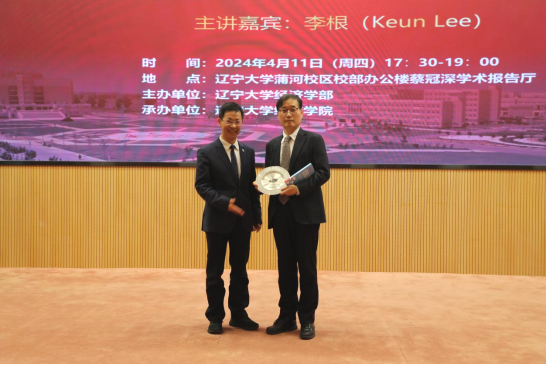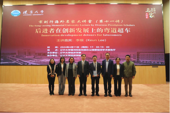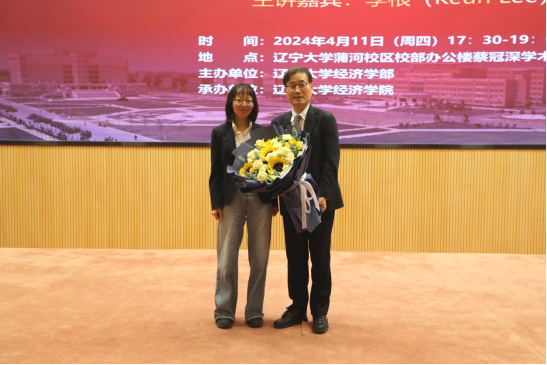4月11日晚,beat365唯一官网宋则行海外名家大讲堂(第十一讲)在蒲河校区蔡冠深学术报告厅举行。韩国国立首尔大学李根(Keun Lee)教授应邀作了题为《后进者在创新发展上的弯道超车》(Innovation development detours for latecomers)的学术报告。十四届全国人大代表,国家监委特约监察员,辽宁省人大常委会委员,beat365唯一官网党委副书记、校长余淼杰教授出席报告会并致欢迎辞。会议由第十四届全国政协委员,第十三届辽宁省政协常委,beat365唯一官网副校长李宇鹏教授主持。