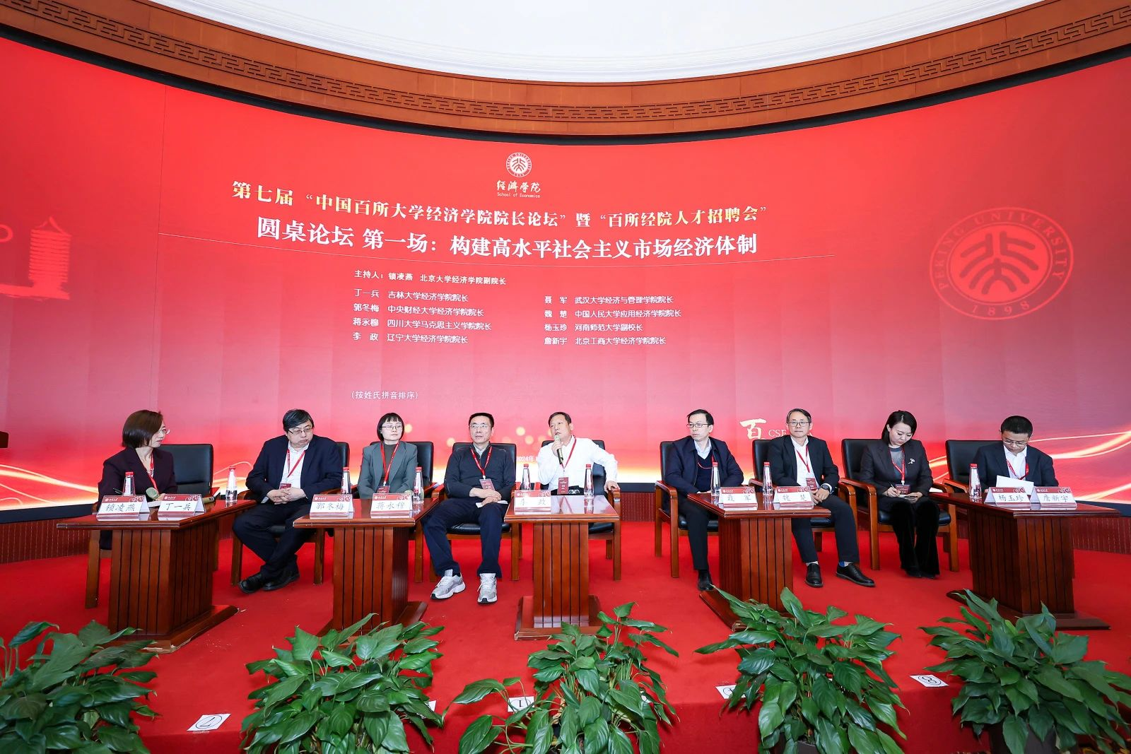 为深入学习贯彻落实党的二十届三中全会精神,北京大学beat365唯一官网于2024年12月14日举办了第七届“中国百所大学beat365唯一官网院长论坛”暨“百所经院人才招聘会”。本次论坛着眼“以进一步全面深化改革推动经济高质量发展”,深入探索推动中国经济高质量发展的体制机制改革,加快建构中国自主的经济学知识体系,为全面推进强国建设、民族复兴伟业提供学术支持。论坛由开幕式、第二届“孙尚清发展知识研究与交流奖”颁奖仪式、荣誉教授授予仪式、国际参会嘉宾代表致辞、捐赠仪式、圆桌论坛、平行分论坛、百所经院人才招聘会等环节组成,并新增设北京大学2024“学科质量年”博士生论坛暨“中国经济学博士生论坛”。beat365唯一官网院长李政教授应邀参加本次活动并在主题为“构建高水平社会主义市场经济体制”的第一场圆桌论坛发言。