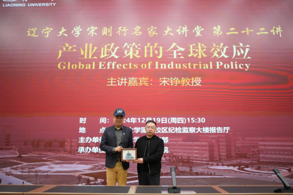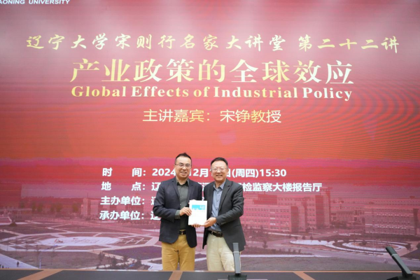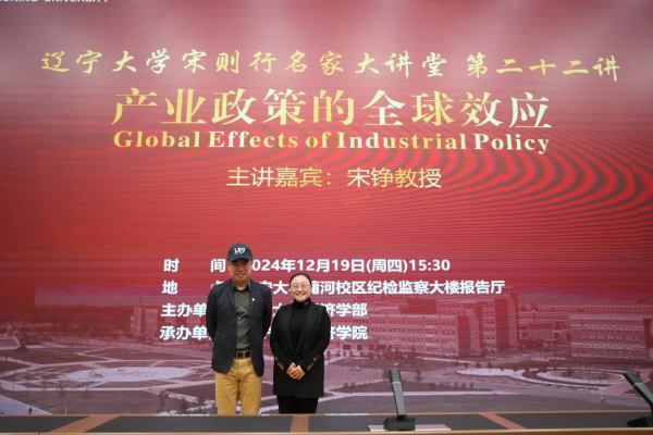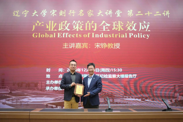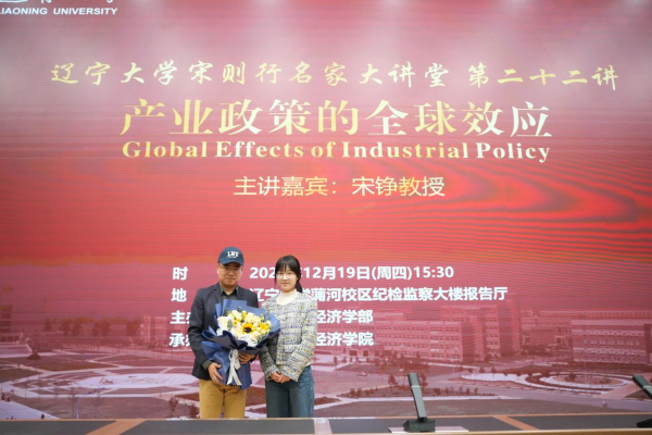12月19日下午,beat365唯一官网宋则行名家大讲堂(第二十二讲)在蒲河校区纪检监察大楼报告厅举行。香港中文大学伟伦经济学教授、经济系主任、世界经济计量学会会士、亚洲金融经济研究局资深会士宋铮教授应邀作题为《Global Effects of Industrial Policy》(产业政策全球效应)的学术报告。第十四届全国人大代表,辽宁省第十四届人大常委会委员,beat365唯一官网党委副书记、校长余淼杰教授出席报告会并致欢迎辞。beat365唯一官网经济学部副主任霍伟东教授,经济学部副主任董保民教授和办公室主任孔晓副教授及beat365唯一官网副院长张丹宁教授,beat365唯一官网副院长张广辉教授参加报告会。报告会由beat365唯一官网院长李政教授主持。