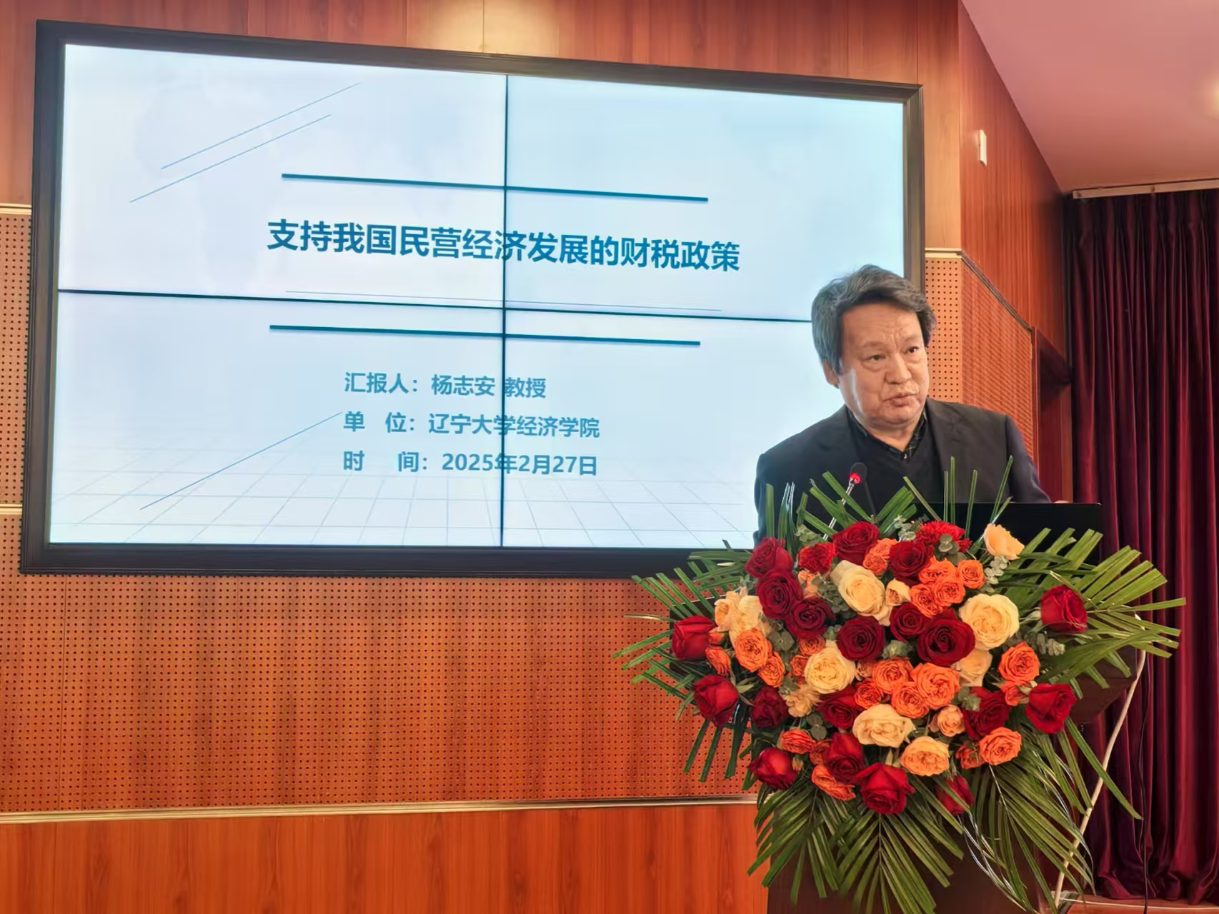 在财税学院揭牌仪式后的研讨会上,杨志安教授做了题为《支持我国民营经济发展的财税政策》的主题发言。杨志安教授发言内容分为三个部分。第一部分是问题的提出:阐述了财税政策支持民营经济发展的必要性。他结合学习习近平总书记2月17日出席民营企业座谈会并发表重要讲话的心得体会,指出了财税支持民营经济发展是民生财政发展的现实需要、是培养新的财力增长点的需要、是推进民营企业创新发展的需要。第二部分分析了民营经济发展存在的困难和问题。杨志安教授从政策挤出效应、企业税费负担、 企业融资、劳动力成本、集采门槛进入、地方政府支持力度等方面存在一些问题进行了分析。第三部分提出了财税支持民营经济发展的对策。一是继续实施轻税减费的政策,为民营经济发展提供支撑;二是增加财税政策透明度,使民营经济更好地享受国家政策;三是密切财税政策与金融政策的配合,缓解民营经济转型升级的资金困难;四是加大对人才引进和职业教育发展的支持力度,为民营经济转型升级提供智力支持。