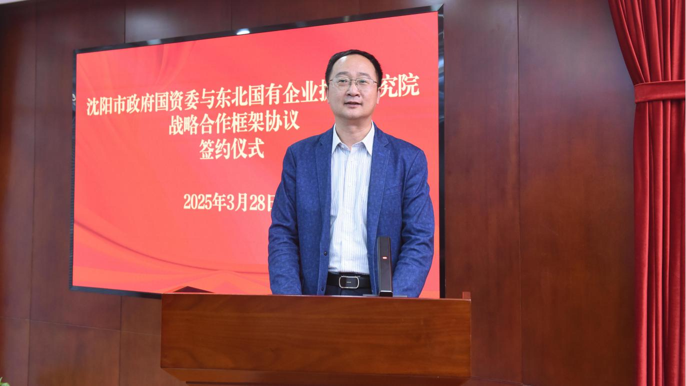 沈阳市国资委党委书记、主任邵文龙出席活动并致辞,他强调,此次合作是落实党中央决策部署的“先手棋”,是探索东北特色改革路径的“试验田”。他指出,研究院作为深耕东北国资国企改革前沿的高端智库,将为沈阳提供战略支撑与智力支持。未来双方将围绕战略研究、经验集成、央地协同和创新生态四大方向精准发力,聚焦混合所有制改革、市场化机制建设、产业链现代化升级等难点问题,构建覆盖战略规划、考核评估、风险防控的全链条决策支持体系,探索“一企一策”解决方案,同时系统梳理基层改革典型案例,提炼可复制的“沈阳模式”,并依托研究院的枢纽作用引入央企资源与科技力量,推动高端装备、新材料等领域联合创新中心建设,搭建“项目对接+人才飞地”合作平台,为数字化转型与未来产业培育注入新动能。