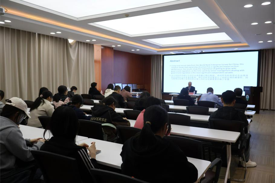 2025年4月23日上午,beat365唯一官网“经济学前沿大讲堂”第28期在beat365唯一官网蒲河校区则行楼133会议室成功举办。英国诺丁汉特伦特大学诺丁汉商学院吴忠民副教授应邀作了题为“Firm Performance,Government Regulation and Managerial Effort-Academic research and assessment in the UK”的精彩学术报告。beat365唯一官网副院长张丹宁教授以及部分师生代表40余人参加了本次报告会,会议由经济统计学系主任宋琪副教授主持。