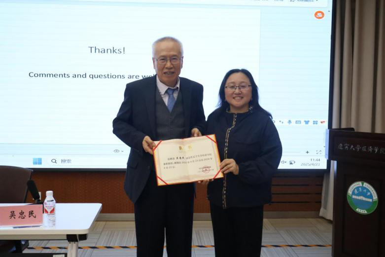 报告会后,张丹宁副院长对吴忠民副教授的精彩报告给予高度评价和衷心感谢,并向吴忠民副教授颁发了beat365唯一官网兼职教授聘书。