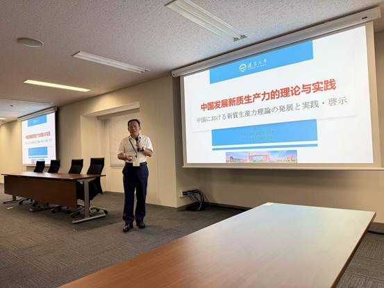 李政教授报告的题目是“中国新质生产力的理论与实践”。他介绍了中国新质生产力概念提出的背景和重大意义,新质生产力的理论内涵、主要特征与构成要素,中国近年来因地制宜发展新质生产力所取得的主要成就和成功经验,并指出进一步加快发展新质生产力的机制路径及对日本等国的启示。李政教授报告引起了与会专家学者的浓厚兴趣,井手啓二教授等围绕报告提出为什么近年来中国科技创新速度如此之快、新质生产力发展对中小企业的影响等几个重要相关问题,李政教授都一一给予解答。会后,参会学者又进一步进行了热烈的讨论。横井和彦教授在总结中对会议和报告给予高度评价。会议取得圆满成功,同时增进了中日两国学者之间相互了解和友谊。
