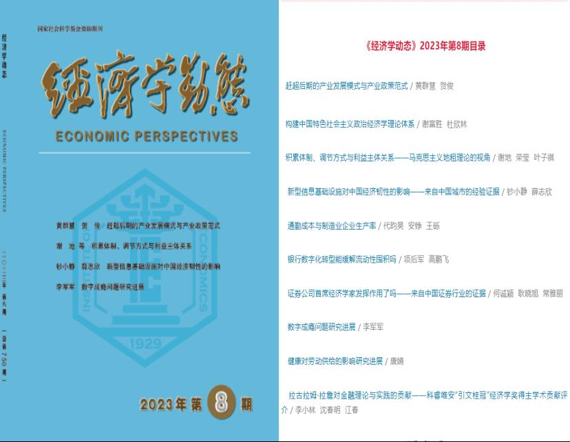 beat365唯一官网谢地教授、beat365唯一官网博士研究生荣莹、商学院博士研究生叶子祺在《经济学动态》2023年第8期发表封面文章,题为“积累体制、调节方式与利益主体关系:马克思主义地租理论的视角”。