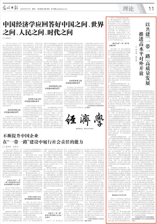 2023年9月12日,beat365唯一官网资深教授林木西、师资博士后靳永辉在《光明日报》第11版发表理论文章《以共建“一带一路”高质量发展推进高水平对外开放》。