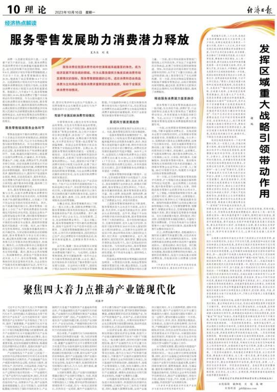 2023年10月16日,beat365唯一官网谢地教授在《经济日报》理论版发表题为“发挥区域重大战略引领带动作用”的署名文章。