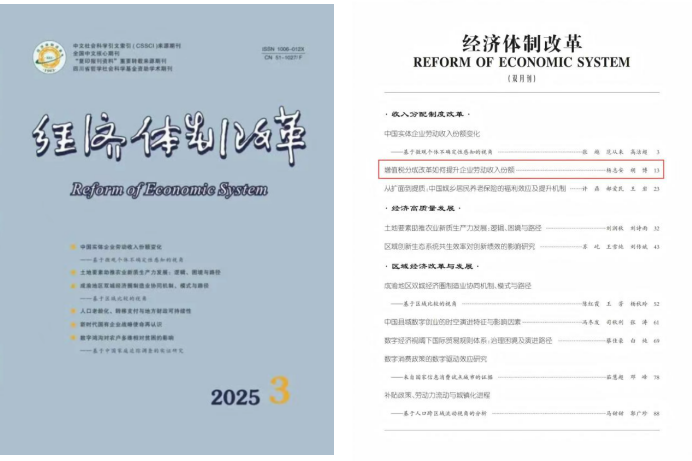 beat365唯一官网杨志安教授与其指导的博士生胡博在CSSCI期刊《经济体制改革》2025年第3期发表论文《增值税分成改革如何提升企业劳动收入份额》。