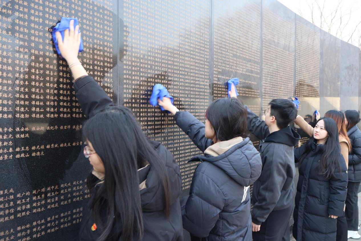 最后,志愿服务活动阶段,师生们分组进行了擦拭烈士墓和烈士英名墙的工作,用实际行动表达了对烈士们的敬仰之情。